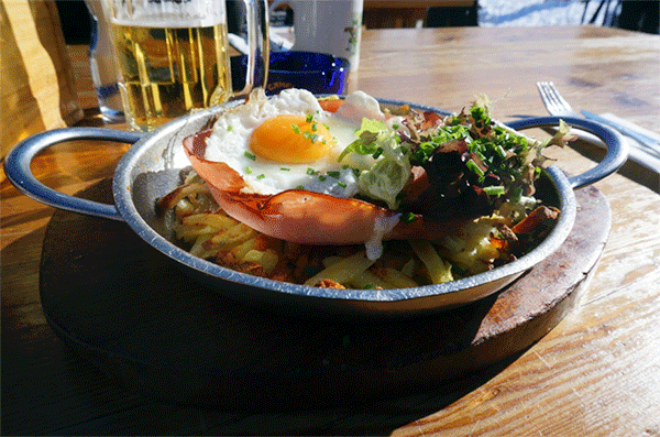 En annan rätt som tåls att rekommenderas ordentligt är den schweiziska röstin. Min favorit är den med ägg och skinka. Mums!