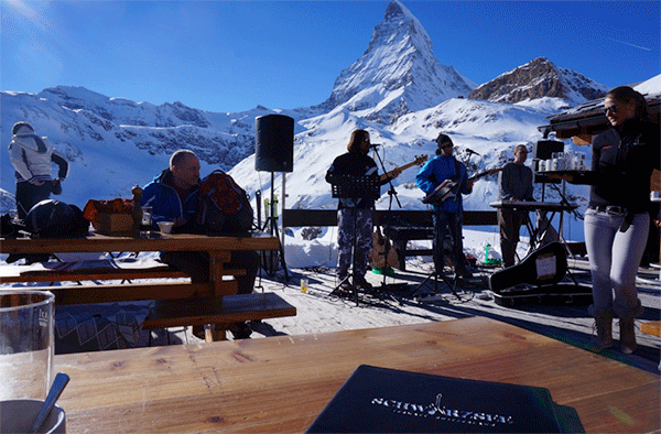 Utöver den läckra maten, livemusiken och den goda servicen så har de även en lockande utsikt. Jag kan till och med säga att du med hög sannolikhet har alpernas bästa utsikt från restaurangens soliga terrass.
