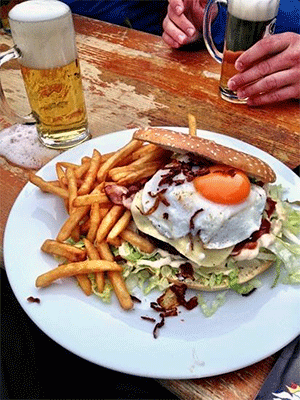 Mellan allt dansande på borden, med utsikt över hela St. Anton, rekommenderas en saftig Mario Matt-burger - även den är värd en guldmedalj.
