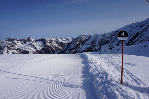 Svart 4 startar på berget Pardatschgrat (försök att säga namnet snabbt tre gånger) på 2624 meters höjd. Som många andra pister i Ischgl är detta en riktigt fin och bred pist. Backen har utsikt över Ischgl by och är nerfarten ner till byn, och framförallt afterskin!